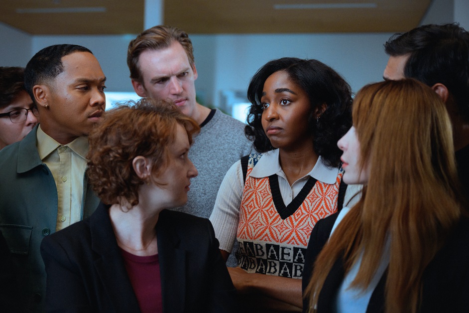 But it’s not just the set and costumes that create an atmosphere of unease; ‘Opus’ is rooted in the psychological complexities of its characters. As Ariel (played by Ayo Edebiri) begins to unravel the mysteries of Moretti’s world, the film explores themes of control, manipulation, and the distortion of fame. The tension between Moretti’s image as a beloved pop figure and his darker role as a cult leader forms the central conflict, creating a fascinating interplay between illusion and reality.